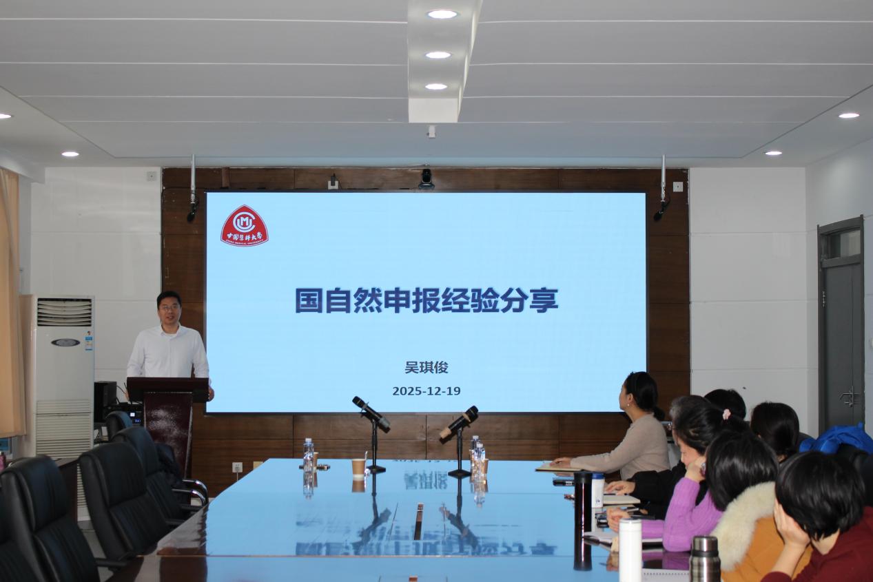 12月19日下午,中国医科大学Beat365唯一官方网站副院长吴琪俊教授应邀莅临Beat365唯一官方网站开展学术交流活动,并作题为《国自然申报经验分享》的专题报告。Beat365唯一官方网站党总支书记兼副院长金新、副院长(主持工作)陈欣,相关专业师生70余名参会。活动由陈欣主持。