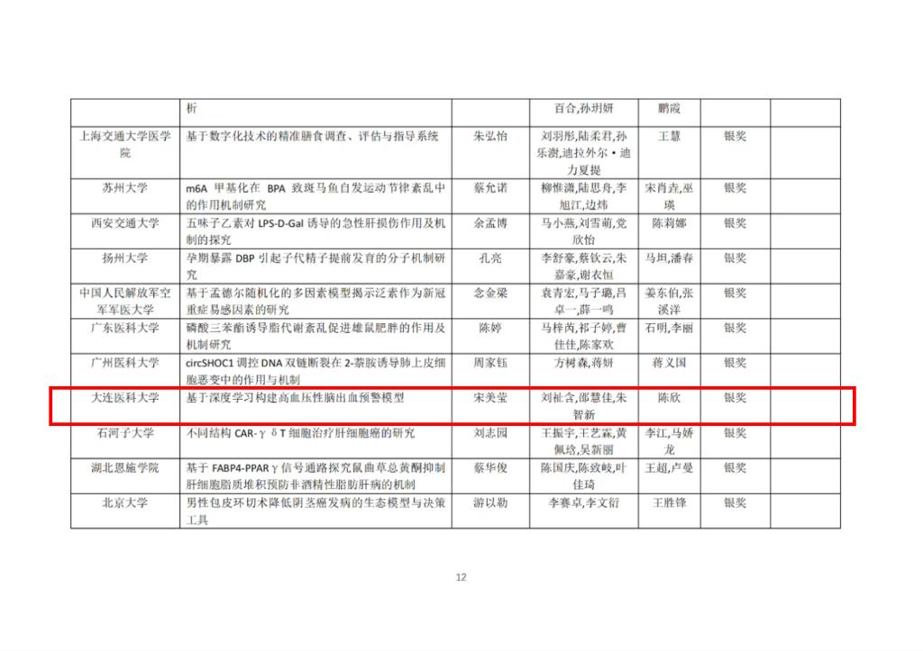 第十届全国大学生基础医学创新研究暨实验设计论坛总决赛部分银奖名单(部分)