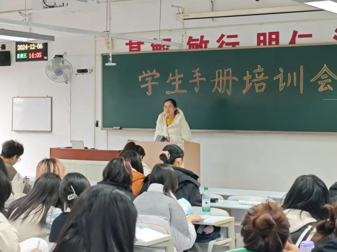 “矩不正,不可为方;规不正,不可为圆。”为帮助新生进一步了解学校规章制度,提升规范意识,帮助其尽快适应大学生活,Beat365唯一官方网站于12月6日在C110召开了2024级学生手册考前培训会。两位辅导员老师和2024级全体新生参加了此次会议。
