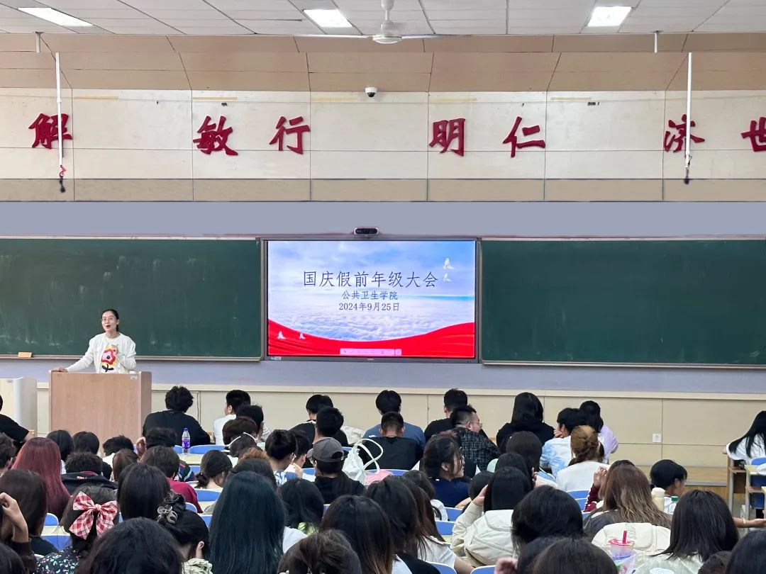 在校生假前安全教育年级大会由王启云老师担任主讲。她围绕假期安排、出行安全、寝室安全、学习备考四个方面对同学们提出有关建议和提醒。第一,传达国庆假期的具体放假时间安排,要求同学们严格遵守学校有关规定,按时返校,如有特殊情况及时向学院报备。第二,明确了交通安全、人身安全、饮食安全、财产安全、防溺水教育和防范电信诈骗、网络安全等方面的问题,在交通安全方面,提醒同学们要遵守交通规则,不乘坐无牌无证、超载的车辆;饮食安全方面,要求同学们注意食品卫生,不吃三无食品、不暴饮暴食;防溺水安全更是重中之重,告诫同学们不要到没有安全保障的海域游泳;防范电信诈骗方面,提醒同学们在上网时要保护好个人信息,不随意泄露自己的身份证号、银行卡号等重要信息,遇到网络诈骗要保持冷静,及时向家长和老师求助。网络安全方面,叮嘱同学们注意个人言论,树立正确的网络观,做健康向上的公卫人。第三,对同学们离校前的寝室内务及留校学生的晚就寝检查进行强调和提醒。针对部分学生宿舍存在用电不规范、阳台堆放易燃杂物、寝室门钥匙普遍未拔等安全隐患,王老师嘱咐同学们必须重视寝室安全,从整体上提升学生安全意识,防患于未然。最后,希望所有同学可以为新学期的学习生活做好规划,调整状态,合理安排作息,度过一个平安愉快的国庆假期。