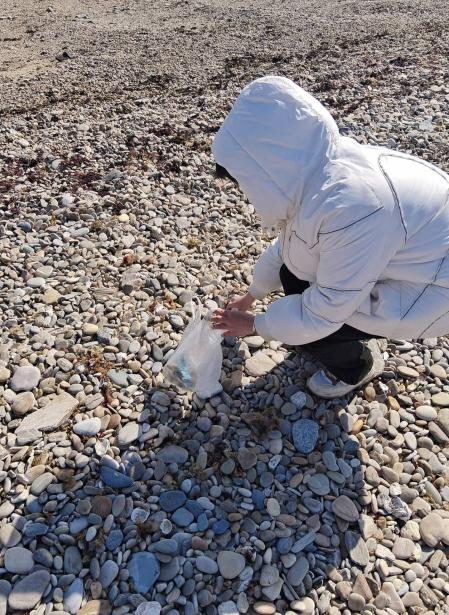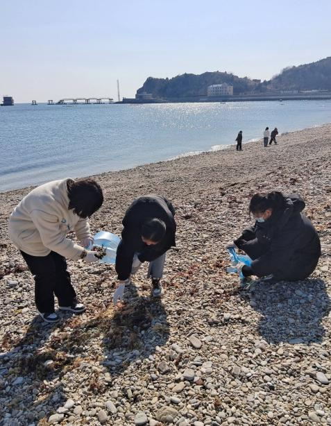2023级预防医学二班的同学们则前往海浪拍击礁石的晚潮滩,他们跟着海浪的节拍,一次又一次弯腰捡拾海滩上的垃圾。一次次重复的劳动中孕育每一个守护绿水青山的我们,将自己的微小力量汇入保护环境的汪洋中。当同学们完成活动再回头看那片熟悉的大海,海洋焕发出新的容貌。太阳下海浪跳跃着星光,正跑向洁净的海滩,同学们从心底感到快慰。