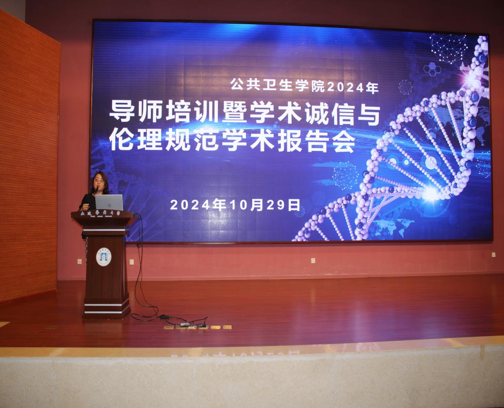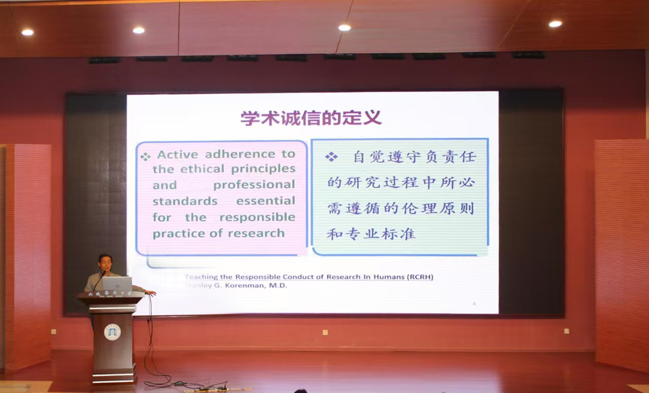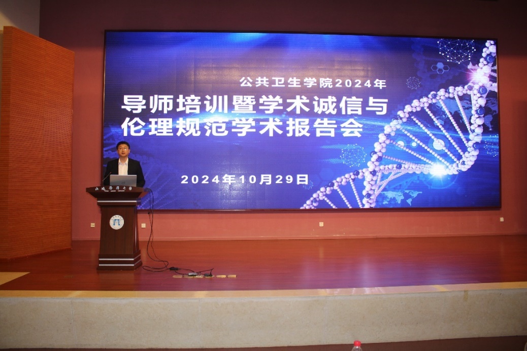 10月29日下午,Beat365唯一官方网站在Beat365唯一官方网站图书馆一楼学术报告厅举办2024年导师培训会暨学术诚信与伦理规范学术报告会。会议邀请Beat365唯一官方网站学术道德委员会委员、肿瘤干细胞研究院雷海新教授作了题为《学术诚信与伦理规范》的学术报告。Beat365唯一官方网站院长孙鲜策,党总支书记于泳,副院长陈欣,研究生辅导员石伟涛,学科与科研办公室张昊,全体导师和研究生以线下线上相结合的方式参加了报告会。会议由孙鲜策主持。