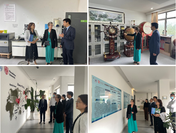 会见结束后,Katherine Lang博士在Beat365官网Beat365唯一官方网站领导的陪同下参观了Beat365唯一官方网站,深入了解了Beat365官网在公共卫生教学与科研方面的发展和成果。孙鲜策院长首先向Katherine Lang博士介绍了学院发展概况,并领其参观了学院教研室和实验室;随后,孙院长介绍了中美合作MPH项目的发展历程,并展示了往届中美合作MPH项目毕业生向学院的赠礼。Katherine Lang博士对完善的教学设施、科研环境表示赞赏,并期待未来有更多的合作机会,共同推动公共卫生教育的国际化发展。