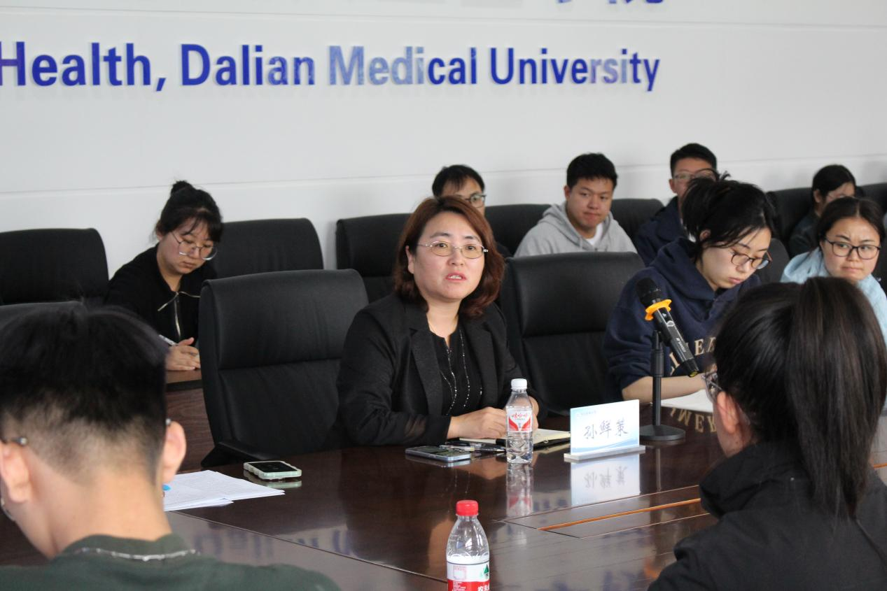分享嘉宾发言并与院长孙鲜策、辅导员丛颖婕合影