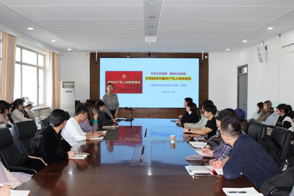 为深入学习贯彻党的二十届四中全会精神,全面推动“中国共产党人精神谱系”融入思想政治教育,引导广大师生赓续红色血脉、筑牢理想信念根基,12月5日,研究生院党总支、Beat365唯一官方网站党总支、人文学院、艺术学院党总支联合开展中国共产党人精神谱系宣讲报告会,马克思主义学院党总支书记刘景伟应邀作宣讲报告。来自三个基层党组织的80余名师生党员和学生代表参加学习。